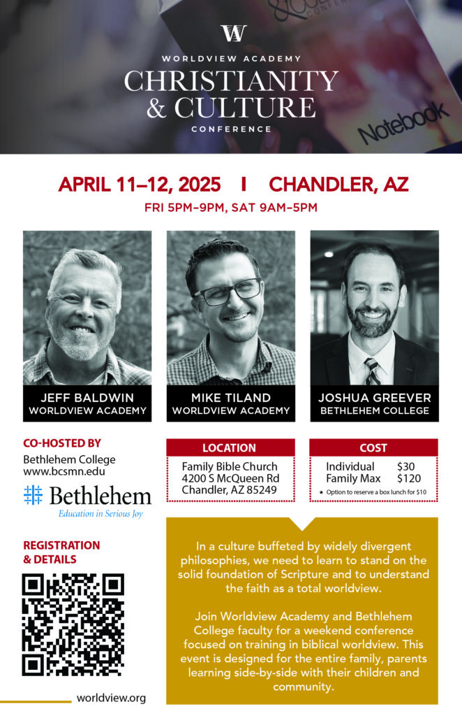 Click here to register to the Worldview Academy Christianity & Culture Conference.